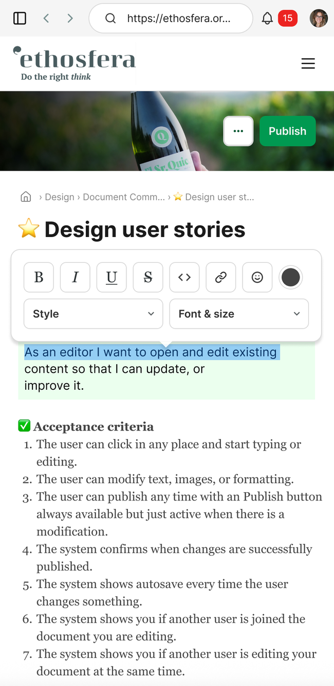 As an editor I want to modify text, images, or formatting in a document So that I can update and improve the document’s content and appearance.