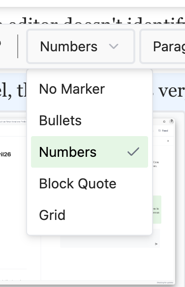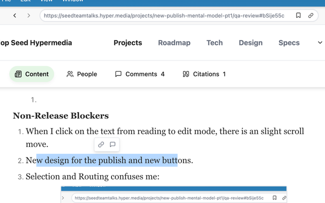 Here, we should list all the noticeable issues we need to fix to ensure a smoother transition between the old and new document renderers. Please review the code in both the electron app and https://dailyplanet.io